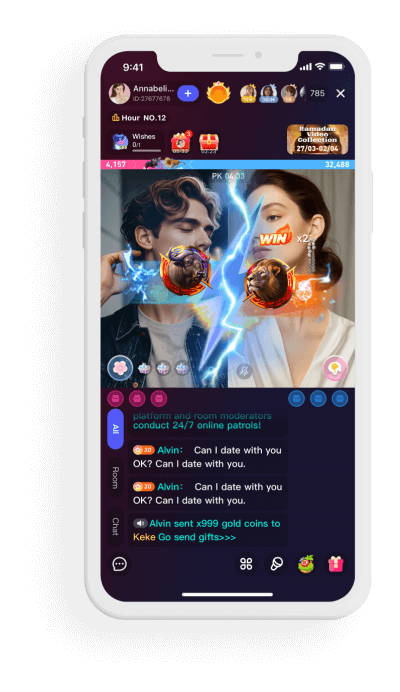 Our Party & PK modes bring users together through real-time interaction, excitement, and friendly competition. Every session becomes a dynamic community moment that drives connection, energy, and engagement